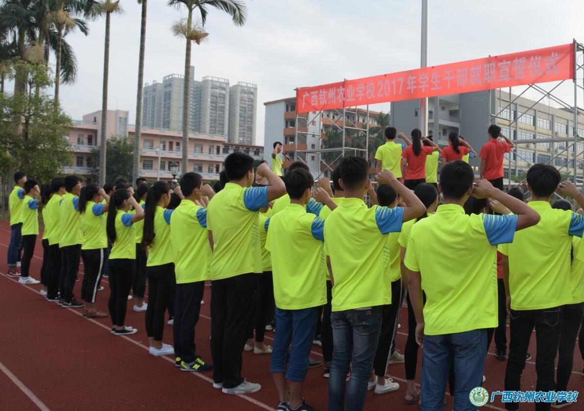 仪式上,学生科邓业斌科长和团委农晓琼书记分别宣读了《广西钦州农业学校第三十二届学生会干部的任职决定》和《关于学校团委内设机构干部任职的决定》。在第三十二届学生会主席的领誓下,新干部们高举右手,庄严宣誓。整齐洪亮的誓言出自意气风发的少年之口,短短数十个字的誓词是一个庄严的承诺,他们在高喊出自己名字的那一刻,也预示着他们将肩负起作为一个学生干部光荣而艰巨的责任。干部们表示,在今后的学习和工作中,一定会团结勤奋、追求卓越,以实际行动展示学生干部的先进性和表率作用,为服务全校师生贡献自己的力量。