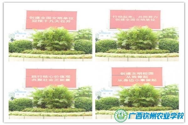 一是做好全国文明单位复评工作的氛围营造,充分发挥宣传标语、显示屏、宣传展板的作用,让师生了解、熟知并践行社会主义核心价值观,营造浓厚的文化氛围,走在校道上你会看到社会主义核心价值观墙体字,一幅幅风格清新的展画,一句句发人深省的格言警句,已经成为潜移默化的宣传正能量。