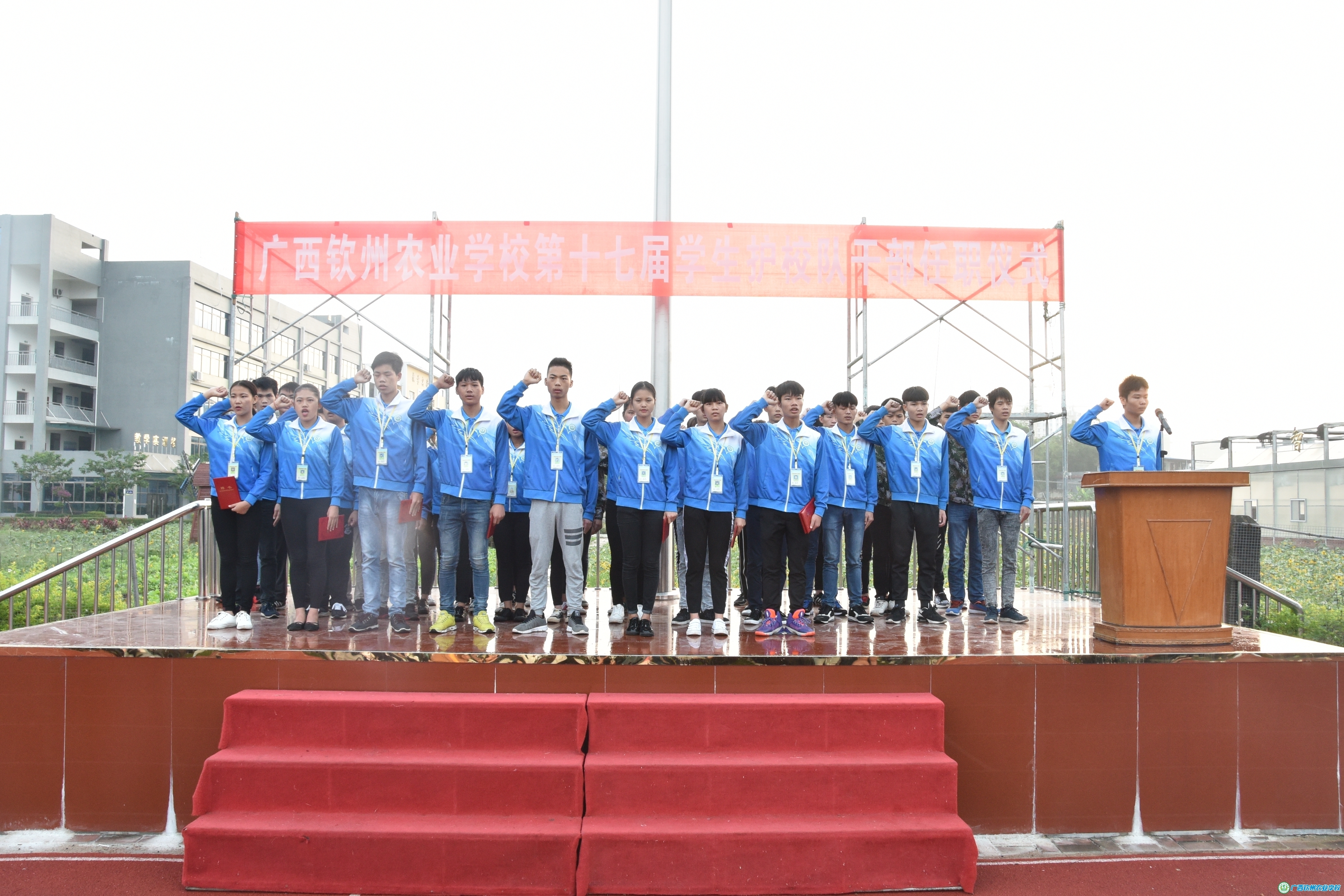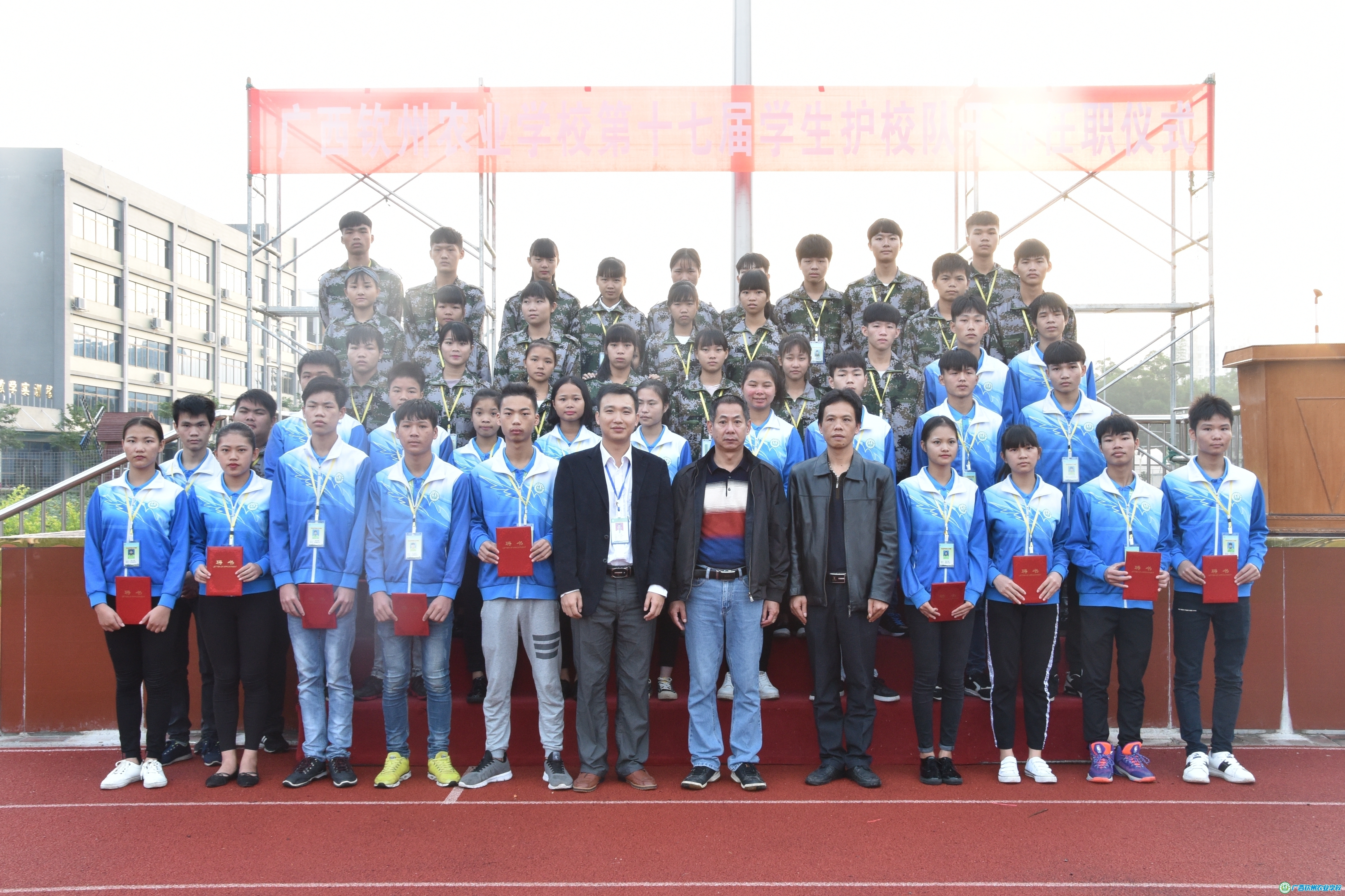 在仪式上,吴明科长宣读了第十七届学生护校队干部的任职决定,陈明强副校长为新当选的护校队常委颁发了聘书,接着新当选的全体护校队干部宣誓就职,护校队大队长植保161班苏胜胜同学带领全体护校队干部进行庄严宣誓:“我志愿加入钦农护校队,服从命令,听从指挥,忠于职守,执勤礼貌待人,维护好校园治安秩序,保护好学校师生的生命财产安全,同一切治安违法行为作斗争。”并表示要以实际行动向学校交上一份满意的答卷。