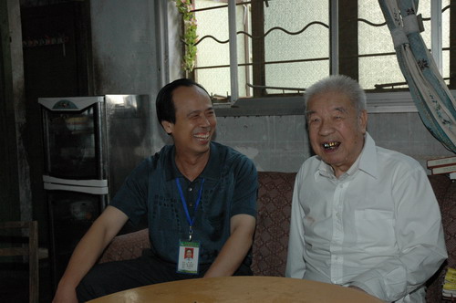 刘波校长与老校长吴恒舜(89岁)亲切交谈