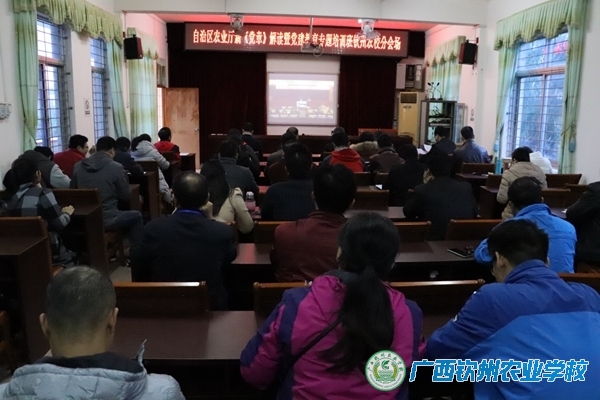 12月14日上午,我校全体党员和全体中层以上干部在第二会议室参加了自治区农业厅“新《中国共产党章程》解读暨党建教育专题培训班”视频会。学校党委书记、校长伍国樑同志和覃效敏副校长、邓喜和副校长、陈明强副校长等在家领导参加了培训视频会。在我校分会场参加培训的党员干部共有70多人,部分离退休党员参加了培训。