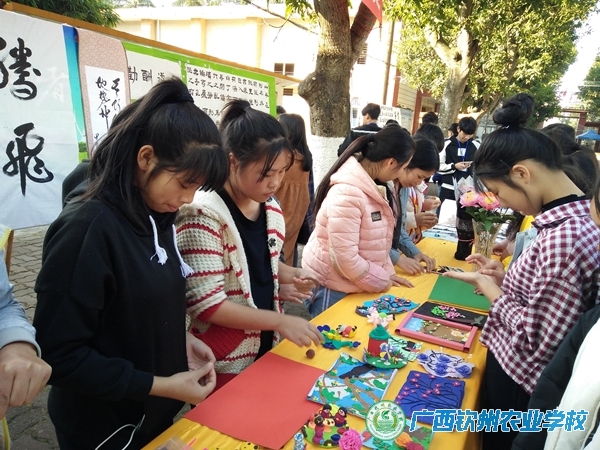 冬日暖阳映校园,社团活动展风采。2017年12月21日下午,书法社和手工艺社联合在主校道举办作品展,展出了书法作品及手工作品50余件,每一件作品都是社团成员利用课余时间书写和制作的,虽不是十分精致美观,但却蕴含着同学们的汗水。作品展吸引了师生的瞩目,大家纷纷围观,不时稍作点评,手工社成员还现场制作超轻黏土玩偶赠送给参观的老师和同学,鼓励他们加入社团一起进行创作。