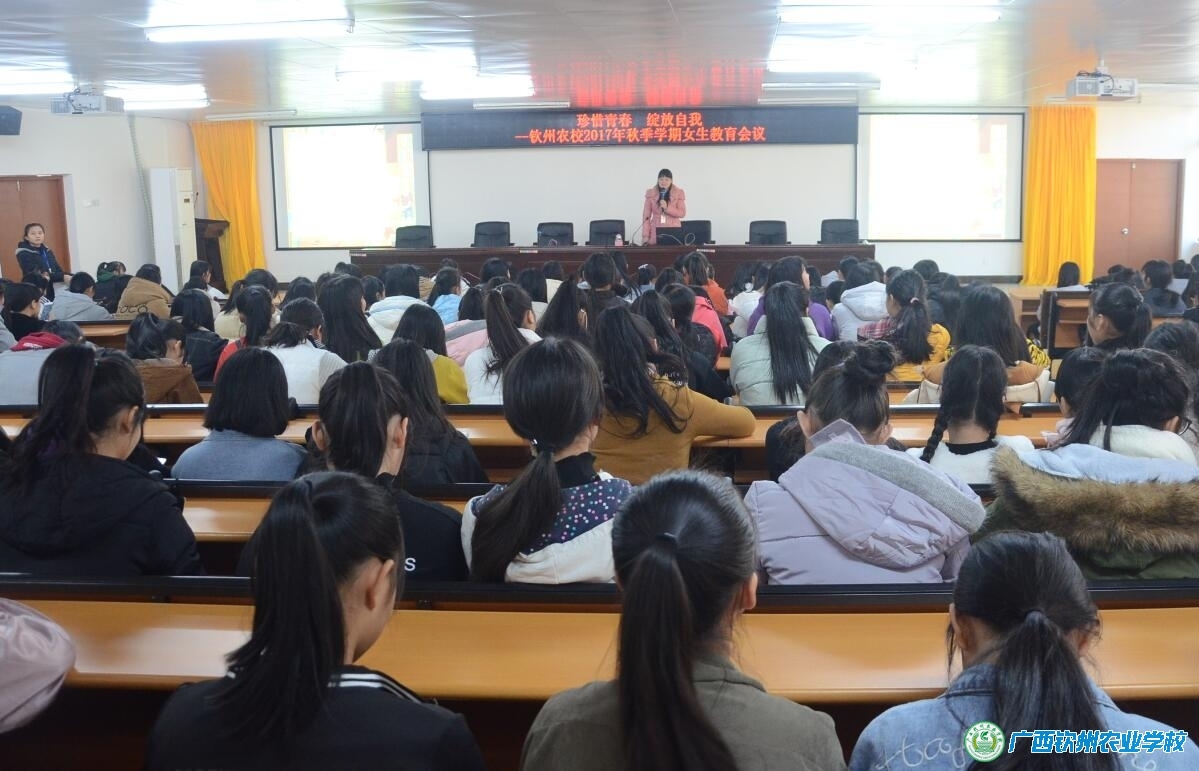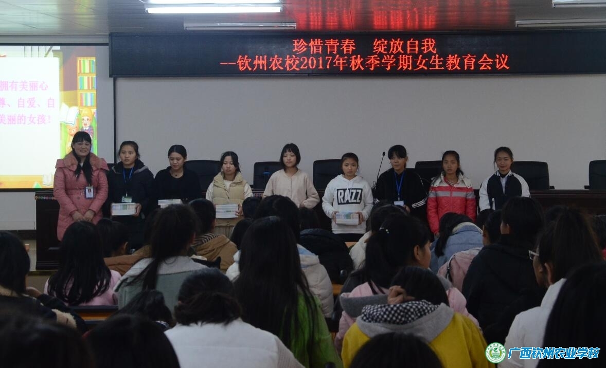 王副科长结合近期我校女生实际情况,从学习态度、仪容仪表、人际交往等方面进行了教育,要求全体女生发挥自身优势,正视自己的缺点和不足,做学习和生活的智者和强者;分析当前中职生异性交往的误区,教育女生如何正确对待与异性的交往;此外,她还特别提醒女生们注意安全,强调周末不能晚归,树立强烈的自我保护意识。最后,她真诚希望全校女生都能“珍惜青春 绽放自我”,做一个自尊、自重、自爱、自强的快乐女生。王副科长还在会上为各班女生发放了钦州市公安局赠送的安全教育读本《女孩平安诀》。