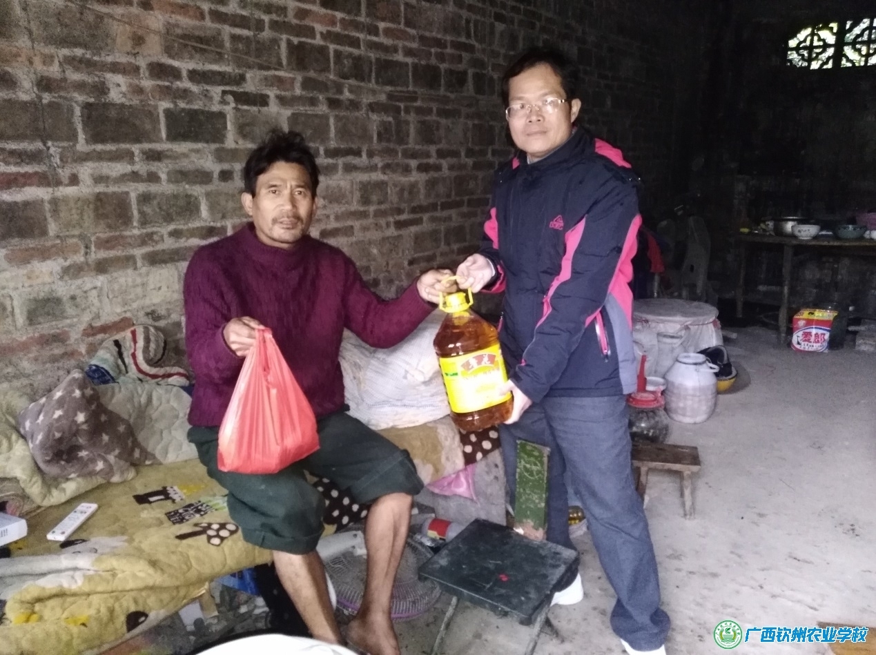 (一)12月14日,在学校党委书记、校长伍国樑同志和覃效敏副校长、邓喜和副校长、陈明强副校长等领导的带领下,我校82名教职工顶着寒风冷雨,到钦北区那蒙镇湴山、屯周、平福、六马等四个村委入户进行冬季慰问、了解核实生活和收入情况等帮扶活动,对我校联系的86户贫困户实现冬季入户慰问全覆盖。