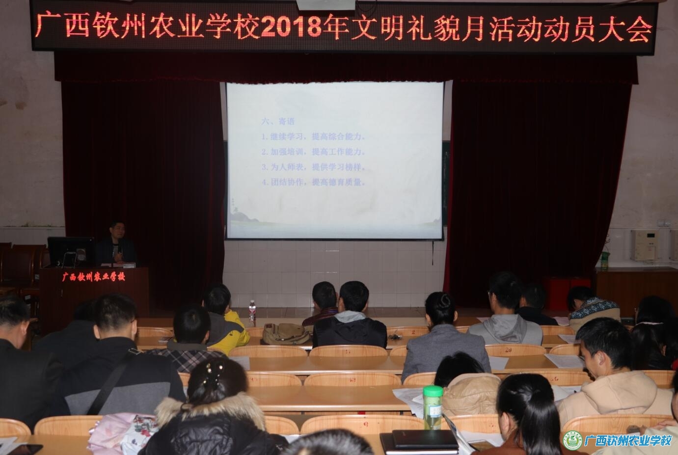 2018年2月24日下午,我校在电化教室召开2018年文明礼貌月活动动员大会,陈明强副校长出席大会,全校各班班主任参加会议。