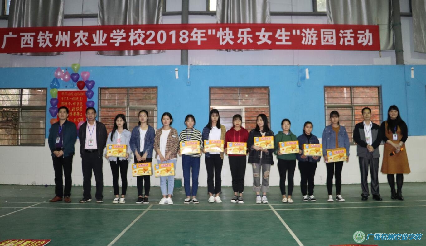 在第108个“三八”国际劳动妇女节到来之际,3月7日“女生节”下午,我校全体女生欢聚一堂,在学校综合球馆举行广西钦州农业学校2018年“快乐女生”游园活动。陈明强副校长出席活动并宣布游园活动开始,王白玉副科长主持活动仪式,学生科老师参加活动。