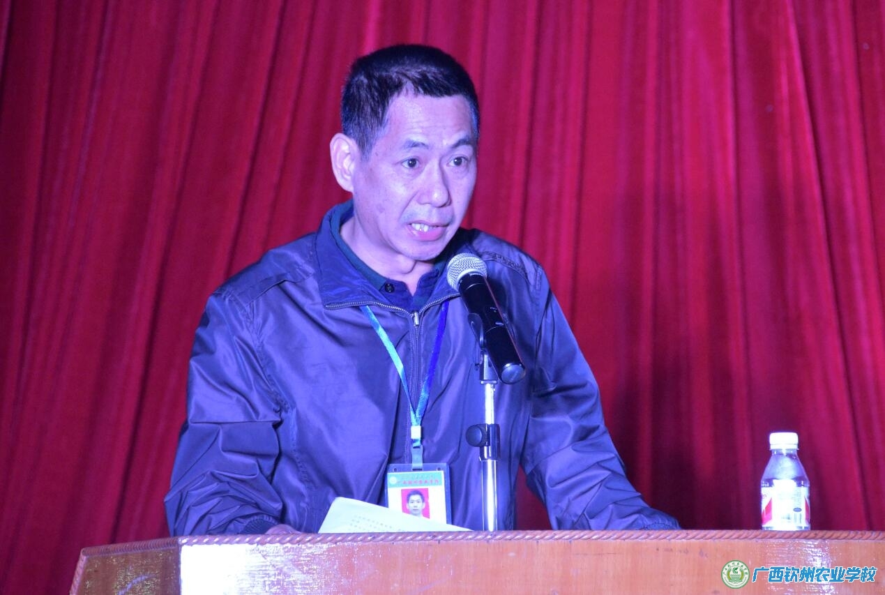陈明强副校长在会上讲话。他肯定过去一个学期学生工作取得的成绩,对新学期学生工作提出四大要求:1.继续加强安全教育,包括交通安全、食品安全、消防安全、疾病安全和活动安全等,要珍惜生命,要遵纪守法,努力打造平安校园;2.继续加强德育教育,全体学生要学会感恩,感恩家庭,感恩社会,感恩祖国;要学会尊重,尊重家长,尊重老师,尊重别人,尊重一切有恩自己的人,做一个懂礼貌、诚信友善、爱国敬业的人;3.重抓内务卫生,“一屋不扫,何以扫天下”,全体师生要抓住建校85周年这个契机,把宿舍内务卫生这个老大难问题处理好,还全体学生一个清洁、卫生的生活环境;4.继续开展丰富多彩的文体活动,打造充满生机活力的校园,促进学生健康全面发展,共同创建钦州农校更辉煌的明天。