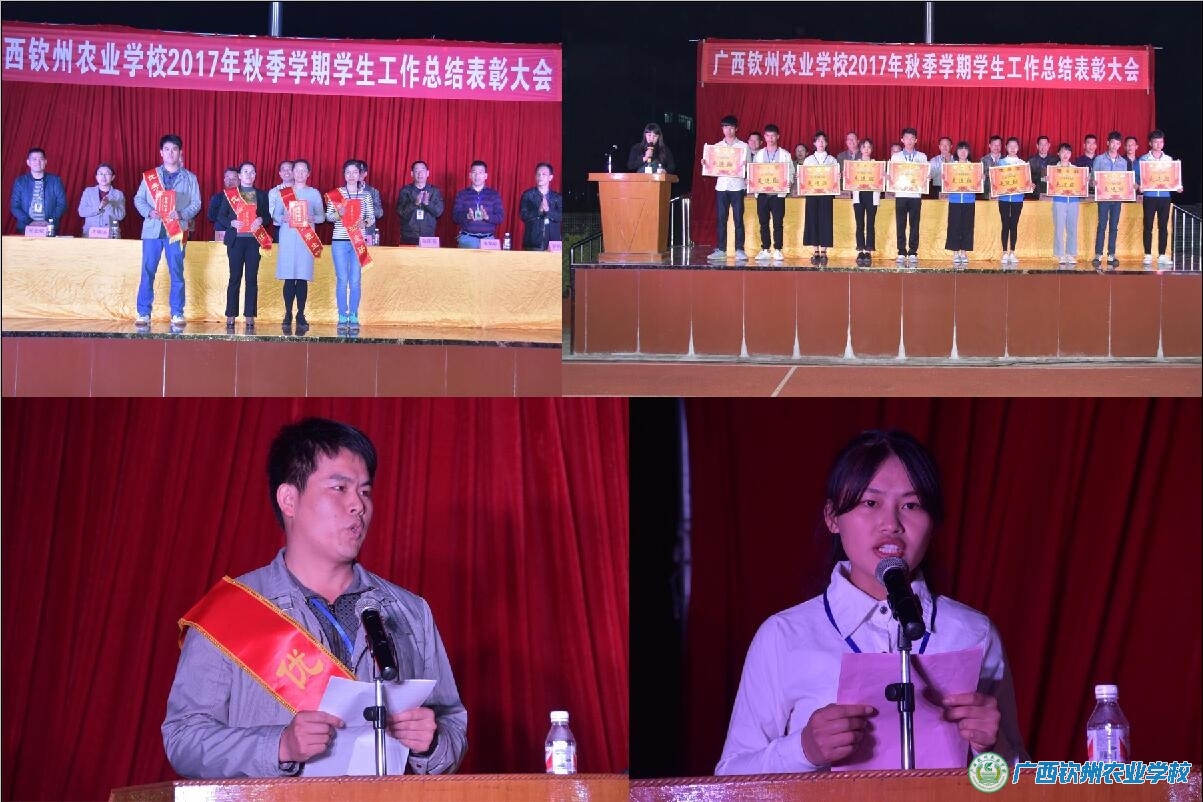 会上,学生科邓业斌科长和团委农晓琼书记分别宣读了2017年秋季学期学生工作及团委工作总结表彰决定;与会领导为受表彰的先进集体和个人进行颁奖。钦农学子们用微笑迎接收获,同时做好新学期挑战准备。