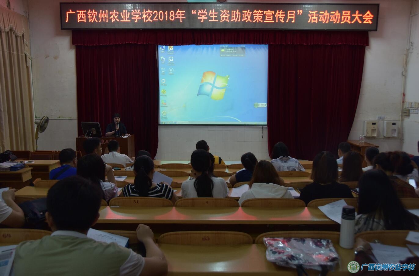 为进一步加大学生资助政策宣传力度,5月1日晚上,我校在电化教室召开2018年“学生资助政策宣传月” 活动动员大会。陈明强副校长出席会议并作动员讲话,全体班主任参加会议,大会由学生科王白玉副科长主持。