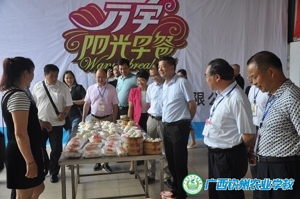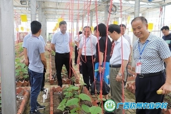 5月4日上午,广西2018年职业教育活动周启动仪式暨全区职业教育工作会议在钦州市北部湾职业技术学校隆重举行。当天下午,自治区农业厅总农艺师李如平、农业厅科教处、教育厅职成处、钦州市相关领导、各高等职业院校校长、区直各中等职业学校校长等180多名与会代表到我校开展实地参观考察活动。