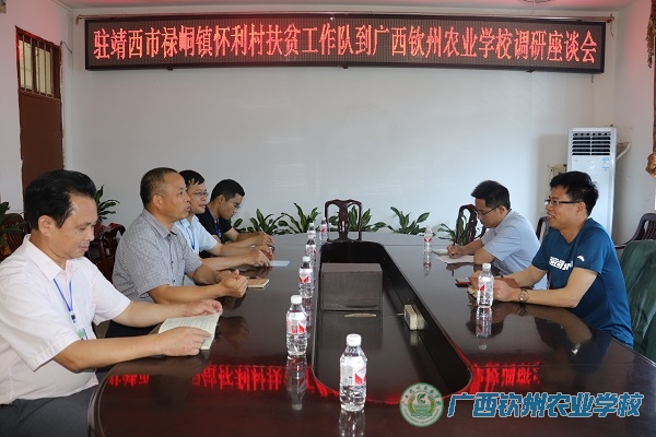 在调研过程中,学校党委办公室组织部分参加靖西市禄峒镇怀利村对口帮扶工作的帮扶人共同召开调研座谈会,就我校在怀利村帮扶点的脱贫攻坚工作进展、帮扶对象的思想动向、存在问题、产业扶贫项目的落实、扶贫项目的科技创新与合作、扶贫+党建活动、扶贫培训等方面工作进行了充分的交流,就下一步的对口帮扶工作进行了规划。工作队还现场考察了我校教学实训基地建设,以拓展更多适合靖西市禄峒镇怀利村的农业产业扶贫项目。