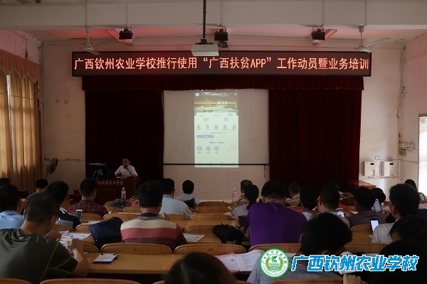 自治区扶贫办建立了广西脱贫攻坚大数据平台移动应用APP,钦北区作为推行试点县市区之一,为了让我校钦北区那蒙镇湴山、六马、屯周、平福村帮扶联系人熟练使用脱贫攻坚大数据平台帮扶APP,更好的推进脱贫攻坚工作,5月8日下午,我校召开推行使用“广西扶贫APP”工作动员暨业务培训会,学校领导班子出席培训会,全体那蒙帮扶联系人参加会议。培训会由那蒙镇扶贫办李林强副主任进行相关工作培训。