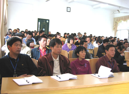 教职工在认真听取动员报告