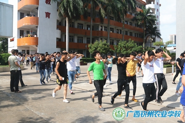 疏散信号响起时同学们双手抱头安全、有序、迅速的撤离到操场等安全地带