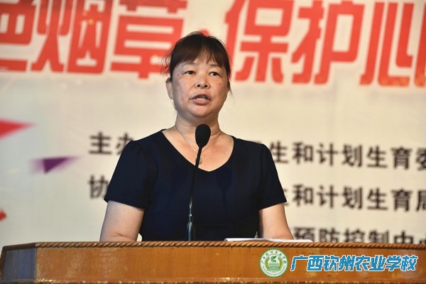 活动现场,钦州市卫生和计划委员会宋芳副调研员讲话,她深刻讲解了吸烟的危害,进一步提高了学生对烟草危害的认识。