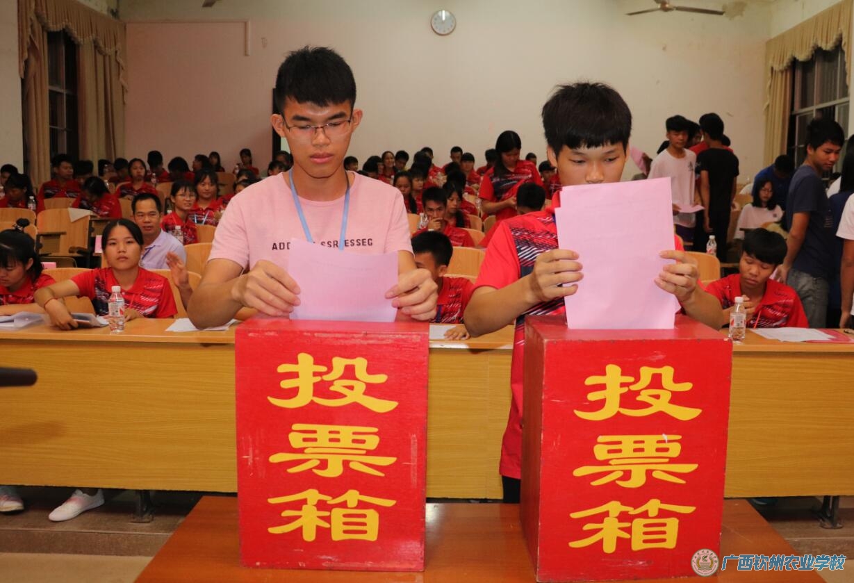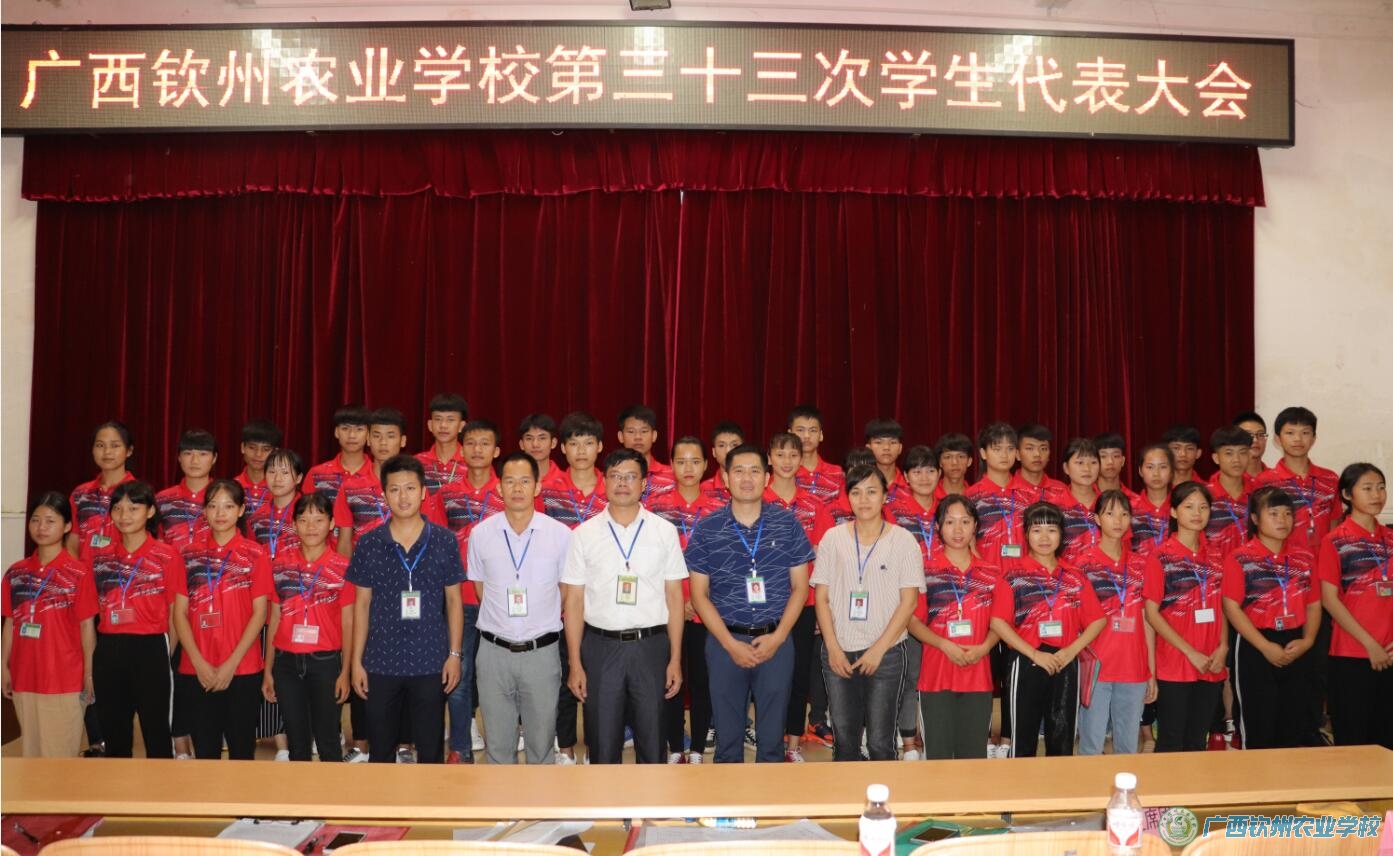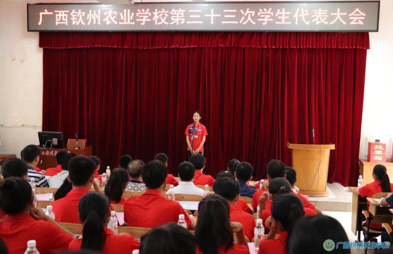 2018年6月13日下午至晚上,我校第三十三次学生代表大会在电化教室隆重召开。学校领导伍国樑校长、覃效敏副校长,相关科室负责人、2017级全体班主任和120名学生代表参加了大会。