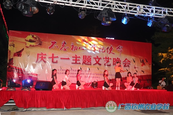 6月28日晚,由水东街道党工委、办事处主办,广西钦州农业学校、钦州市水产畜牧兽医局、钦州市妇幼保健院等单位承办的 “不忘初心·牢记使命”庆七·一文艺晚会在钦州市妇幼保健院举行,我校学生受邀参加节目演出。