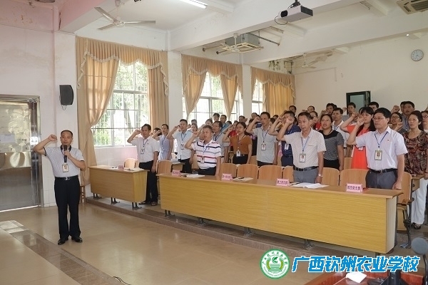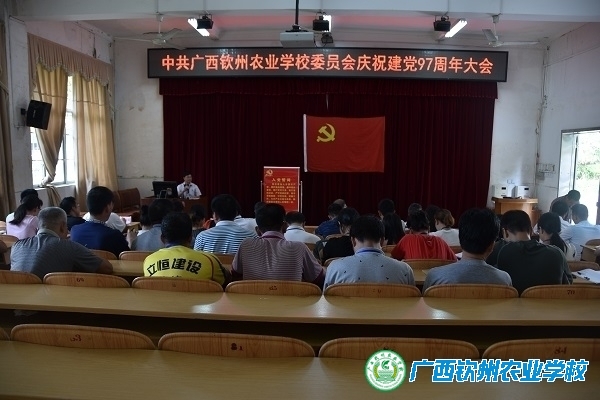 为庆祝中国共产党成立97周年,7月2日下午,我校在电化教室召开全体党员大会,通过重温入党誓词、上党课等活动,增强党员的党性观念,激励每一位党员牢记党的宗旨,履行党员义务,争当合格共产党员。学校党委书记、校长伍国樑同志,党委委员、副校长覃效敏同志,党委委员、副校长陈明强同志,副校长邓喜和同志、工会主席陆武昌同志出席大会。