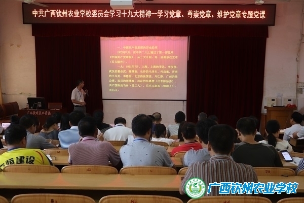 之后,党委委员、副校长陈明强同志上了一堂题为《学习、尊崇、维护中国共产党章程》的专题党课。陈明强同志从中国共产党章程的历史沿革、修改、新思想、新论点等方面,为全体党员做了深入细致的讲解,让全体党员加深了对中国共产党章程的理解和认识,从而更加坚定理想信念,用习近平新时代中国特色社会主义思想武装头脑,增强“四个意识”、坚定“四个自信”,在新时代担当新使命,做出新贡献。