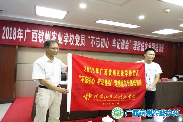 我校党员培训班学员在班旗上签字留念并回赠班旗