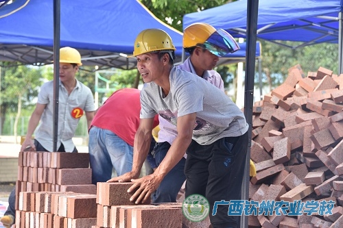 图为砌砖工比赛