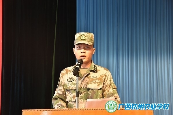 钦南区武装部干事包伟伟在动员讲话中希望全体新生在军训期间,以良好的心态迎接挑战,服从指挥认真学习,劳逸结合,一切行动听指挥,团结协作克服困难,加强组织纪律性,严格要求自己练就基本军事素质和本领,以饱满的精神面貌圆满地完成军训任务。