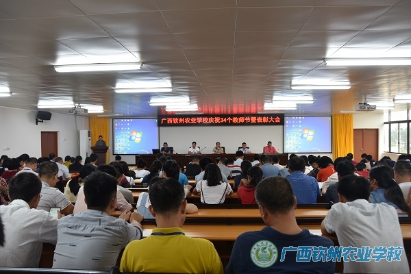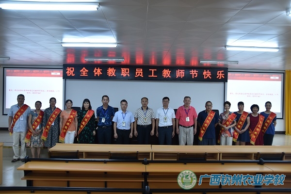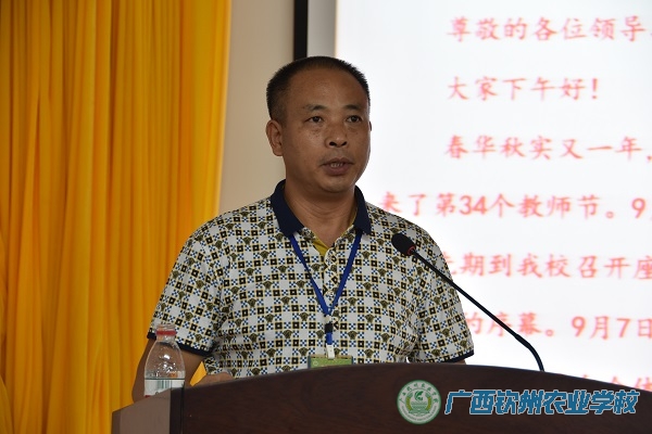 工会陆武昌主席宣读自治区农业厅及学校致全体教职工的慰问信;覃效敏副校长宣读《广西钦州农业学校关于表彰2017-2018学年度先进教育工作者的决定》、《广西钦州农业学校关于表彰2016-2018学年度“十佳”优秀教师、“十佳”优秀班主任的決定》。学校领导为获得表彰的先进教育工作者、“双十佳”教师以及获得区级、市级荣誉的教师代表颁发了荣誉证书。“双十佳”教师陈新萍老师、莫莉莉老师分别作为教师代表发表感言。
