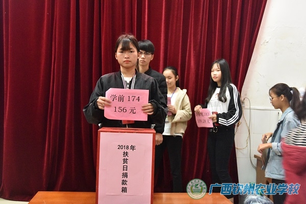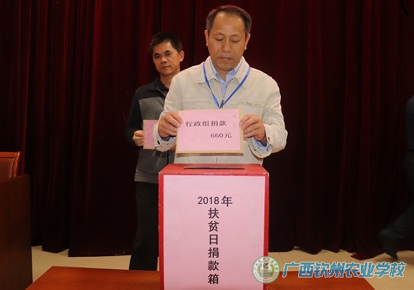 10月17是我国第五个全国“扶贫日”,也是第26个国际消除贫困日,为进一步弘扬中华民族崇德向善、扶贫救济的传统美德,学校党委办公室通过召开动员会、发捐款倡议书,大力宣传并发动全体教职工、学生为我校定点帮扶村捐款捐物。10月19日早上7时整,我校在电化教室开展“扶贫日”捐款活动,覃效敏副校长、邓喜和副校长、陈明强副校长、工会陆武昌主席出席捐款仪式,学校各行政学习小组组长、各班团支书参加仪式。仪式由党委办公室胡礼荣主任主持。