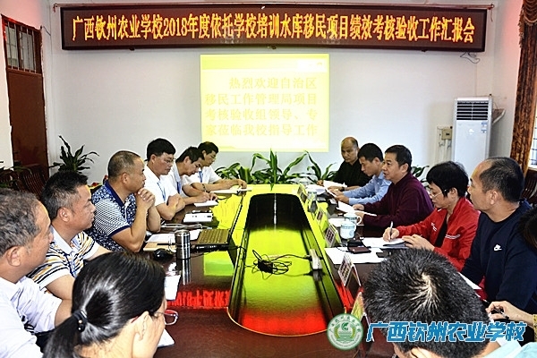 2018年11月6日,以自治区移民工作管理局、教育培训处覃革处长为组长的专家组一行7人莅临我校开展2018年度依托学校培训水库移民项目绩效考核验收工作。学校领导班子成员参加了验收汇报会。