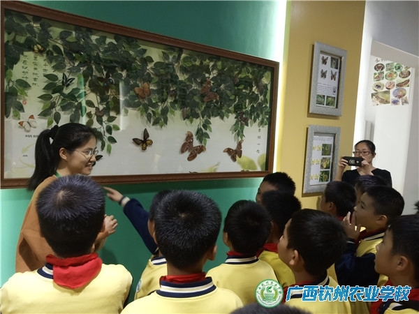 我校刘冬梅老师在昆虫馆为小学生介绍蝴蝶生活史