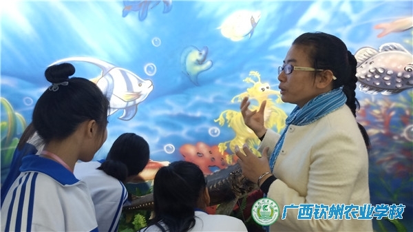 我校阳连贵老师在水产馆为中学生讲解水产知识