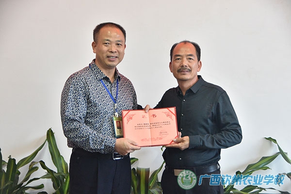 覃效敏副校长主持大会并宣读了《广西钦州农业学校关于调整新一届淡水养殖专业建设指导委员会的决定》,之后与广西芳草安桂生物科技有限公司总经理欧阳贤华签订校企合作协议书,伍国樑校长为专家颁发聘书,聘请欧阳贤华、张俭强、方怀义、陈家珍、黄伟德等专家为我校新一届淡水养殖专业行业建设指导委员会的委员。