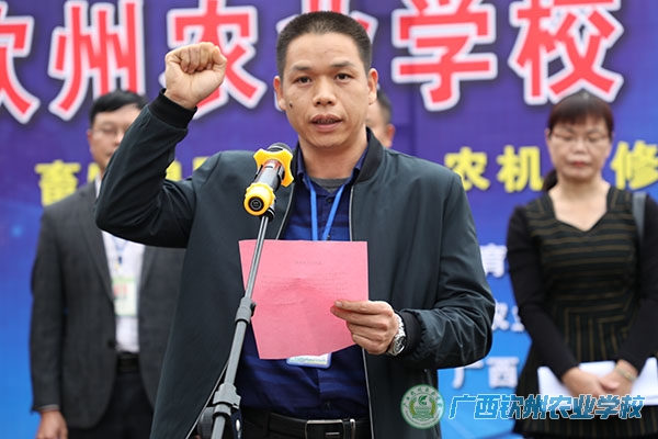 2018年12月21日下午在我校召开2018年钦州市中职学校“文明风采”竞赛畜牧兽医赛项、农机维修项目开幕式。教育局罗玲监督员、我校伍国樑校长、覃效敏副校长出席开幕式。开幕式由教务科黄月秀副科长主持,我校牧医172班冯咸获同学代表参赛选手宣誓,杨祖闹老师代表裁判员宣誓,覃副校长致开幕辞,他指出,这是钦州市教育局交给我校的一项光荣任务,体现了市教育局对我校专业建设和教育教学工作的支持和肯定,我们要全力以赴做好承办工作,不辜负市教育局的期望。同时,通过比赛,增进我校与兄弟学校之间的交流与合作,共同推进我校职业教育的发展。最后,在选手们的掌声中伍国樑校长宣布竞赛开赛。
