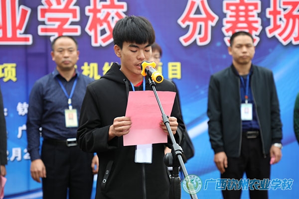 图四、广西钦州农业学校校长伍国樑宣布比赛开幕