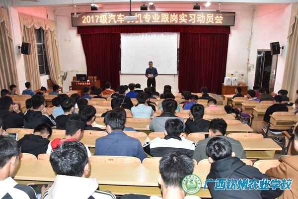 实习前,召开学生实习动员会,理工教学部杨祖闹主任给学生提出了明确的学习目标,强调了严格的纪律要求,也做好了相应的安全防范措施,同时告诫学生:“此次实习,一切言行都代表着钦州农业学校的形象,希望大家注意行为规范,团结互助,共同完成本次实习工作”。