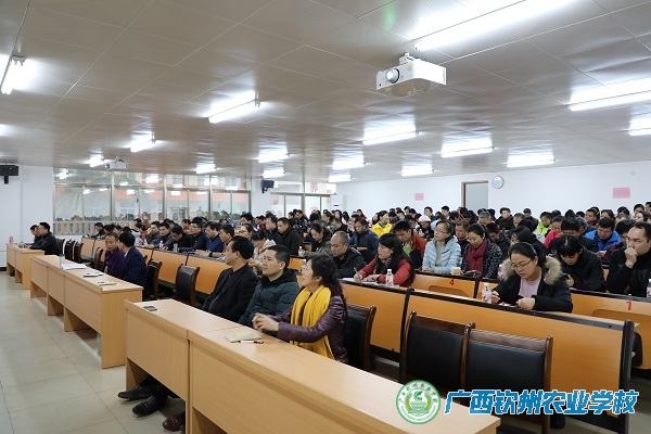 2月23日上午,我校在多功能报告厅召开2019年春季学期教职工开学大会,校领导伍国樑、覃效敏、陈明强出席,全体教职工参加会议。