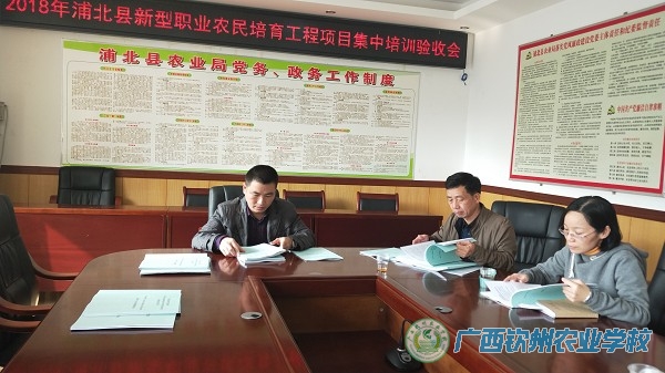 3月19日,学校覃效敏副校长、培训中心唐伟尤主任到浦北县农业农村局进行培训项目考核验收工作,浦北县新型职业农民培训工作验收组对广西钦州农业学校2018年承担的新型职业农民培训任务350人进行了检查验收。