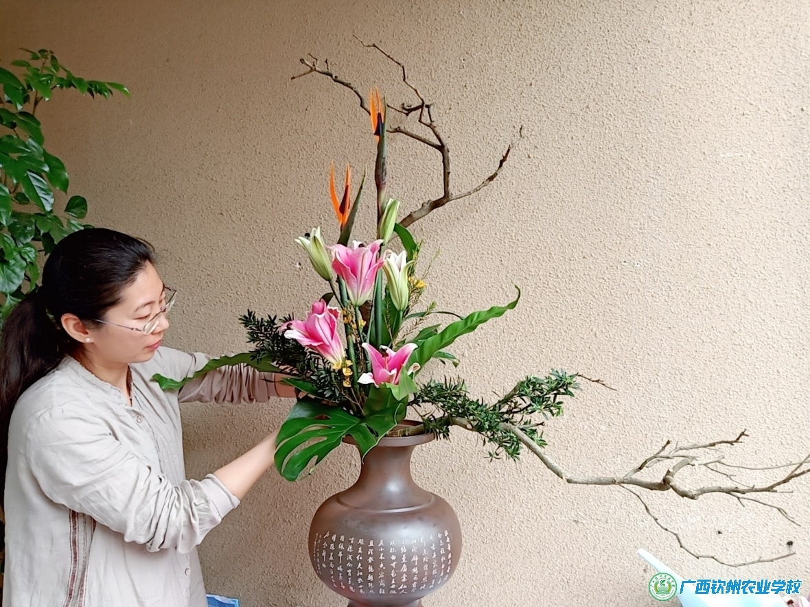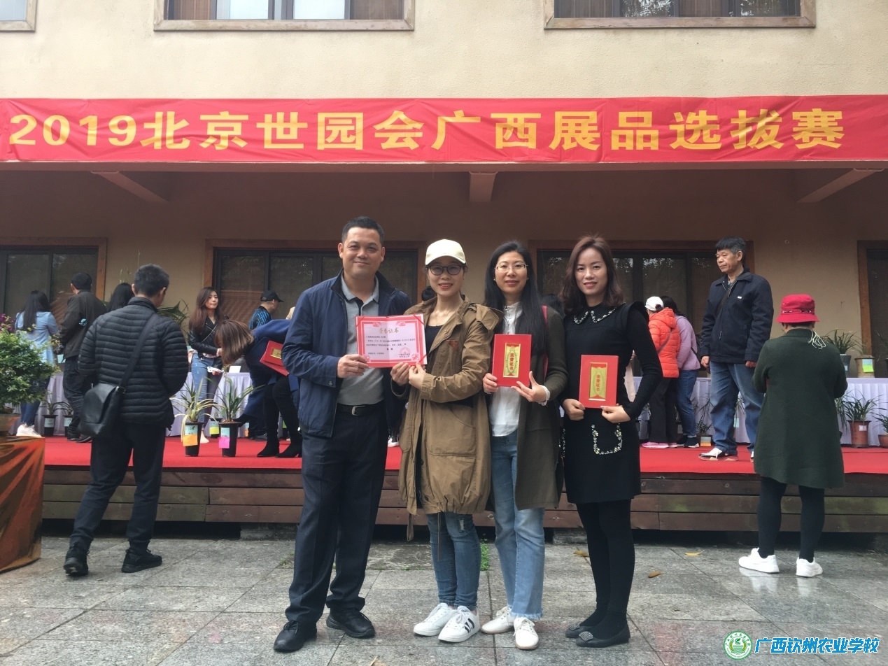 3月22日至23日,2019北京世界园艺博览会广西展品选拔赛在南宁市金花茶公园 · 和园举办,一场百花争艳的选拔赛精彩上演,为全面展示自治区花卉产业成果,弘扬花卉文化,推动广西花卉产业健康发展,广西花卉协会从全区各地共征集和遴选了各类优秀花卉展品200 多件,涵盖鲜切花、兰花、盆景、盆栽(组合盆栽)、插花花艺、干花等六大类,我校现代农业教学部园林专业老师积极报名参加选拔赛,莫莉莉老师的坭兴陶瓶插花作品“罗汉百合济刚柔”荣获银奖,压花作品“荷叶田田”获优秀奖,马小峰、甘向平老师的组合盆栽作品“村绿馨满院”荣获银奖,届时,获奖展品将远赴北京代表广西参加 2019 北京世园会室内展赛。