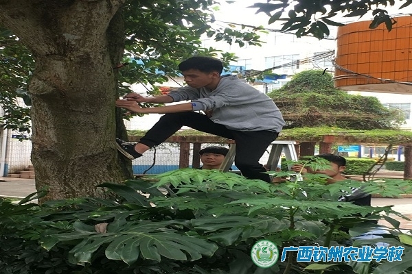3月20日,早春时节,甘向平老师带领我校园林班的同学来到校道旁果树下,给学校的绿化功臣,空气清洁能手——校道的芒果树、荔枝树、龙眼树进行了蛀干害虫的防治工作,同学们认真听老师讲解技术要领,按要求在树干相应位置打孔,并插入防蛀药瓶,给果树们打上了“点滴”,虽然春雨绵绵但大家依然热情满怀,期盼着今年又是一个丰收年。