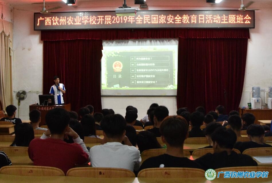 2019年4月15日是第四个全民国家安全教育日。为深入学习贯彻习近平新时代中国特色社会主义思想,坚持总体国家安全观,着力防范化解重大风险,喜迎中华人民共和国成立70周年,根据自治区教育厅《关于开展2019年全民国家安全教育日活动的通知》(桂教安稳〔2019〕7号)精神,结合我校学生工作的实际情况开展了以“千万学生同上一堂国家安全教育课”为主题的国家安全宣传教育日活动。