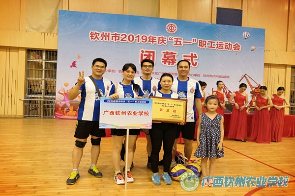 钦州市2019年庆“五•一”职工运动会共有男子篮球赛、男女混合气排球赛、羽毛球赛、乒乓球赛、中国象棋赛5个项目,我校工会积极响应,派出篮球代表队和气排球代表队参赛,在赛场上参赛队员们克服伤痛,默契配合,团结协作,全力以赴,取得了气排球赛第三名的喜人成绩。