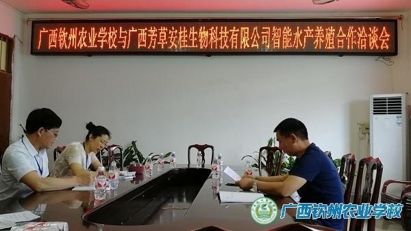 您的位置: 首页 » 校园动态 » 校园新闻 » 广西钦州农业学校与广西芳草安桂生物科技有限公司智能水产养殖合作洽谈会