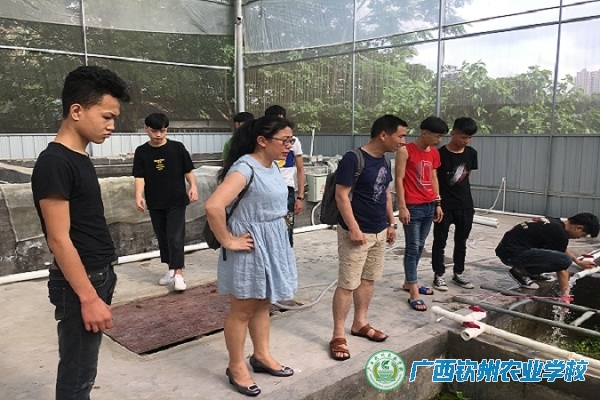 会后,欧阳贤华经理在莫主任和淡水养殖专业教师的陪同下来到实训基地对水产养殖环境进行现场考察。