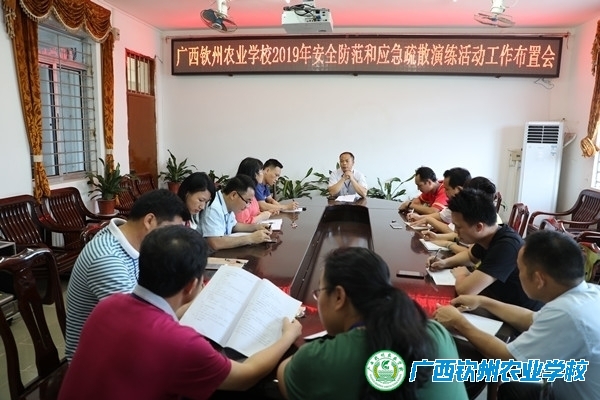 会上,办公室李从庆主任详细解读了《广西钦州农业学校关于开展2019年安全防范和应急疏散演练活动的方案》。