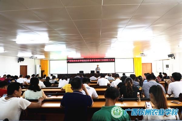 伍国樑校长对2019年全国科技活动周钦州市校园科普活动暨“TCL杯”广西钦州农业学校第17届学生技能竞赛进行了总结,并对招生工作方案、宣传工作方案及节能减排工作方案进行详细解读,明确了下一步工作要求,希望全体教职员工再接再厉,保持积极进取的钦农精神。