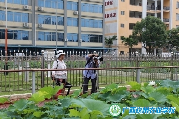 随着钦州农校美景的图片、视频在微信朋友圈和头条的转发,越来越多的人们闻讯赶来,欣赏这一“网红打卡地”。幼儿园的小朋友、老师和家长们来了,在花田旁边的操场举办亲子活动,打水枪、做游戏,让钦州农校整个校园享受了清凉一夏,花海的每一朵花在这欢声笑语中一起舞动欢快的舞姿;打扮时尚的老年大学的阿姨们来了,用她们的混天绫,舞出属于她们的芳华;穿着汉服的小姐姐来了,在荷塘月色里与荷花翩翩起舞,犹如落入凡间的花仙子;培训机构“兴趣班”的小学生来了,在荷塘边上,把朵朵娇艳的荷花定格在画板上;摄影师也来了,扛着“长枪短炮”或站、或蹲、或趴,捕捉花朵最美的姿态……人在花中走,恰似画中游,人们徜徉在醉人的花海中流连忘返。