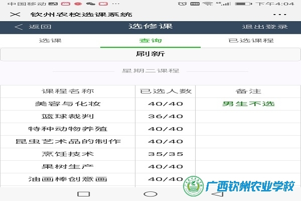 选课课程查询界面