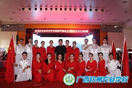 近日,校团委组织20名教师前往南宁参加自治区农业农村厅庆祝新中国成立70周年文艺汇演初赛,经过激烈角逐,我校的参赛节目独唱加伴舞《新的天地》在厅属单位37个节目中脱颖而出,顺利进入决赛,决赛将于26日晚在广西农业职业技术学院举行。