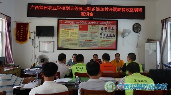 在连加村村委会议室,陈明强副校长一行与驻村第一书记、驻村工作队员、两委班子座谈,听取连加村脱贫攻坚工作及产业扶贫项目发展情况,以及许贵老师脱贫攻坚工作开展情况和取得工作成效,鼓励许贵老师继续保持良好的工作态势,鼓足干劲,扎实做好各项工作,确保顺利圆满地完成驻村这项艰巨而光荣的任务。