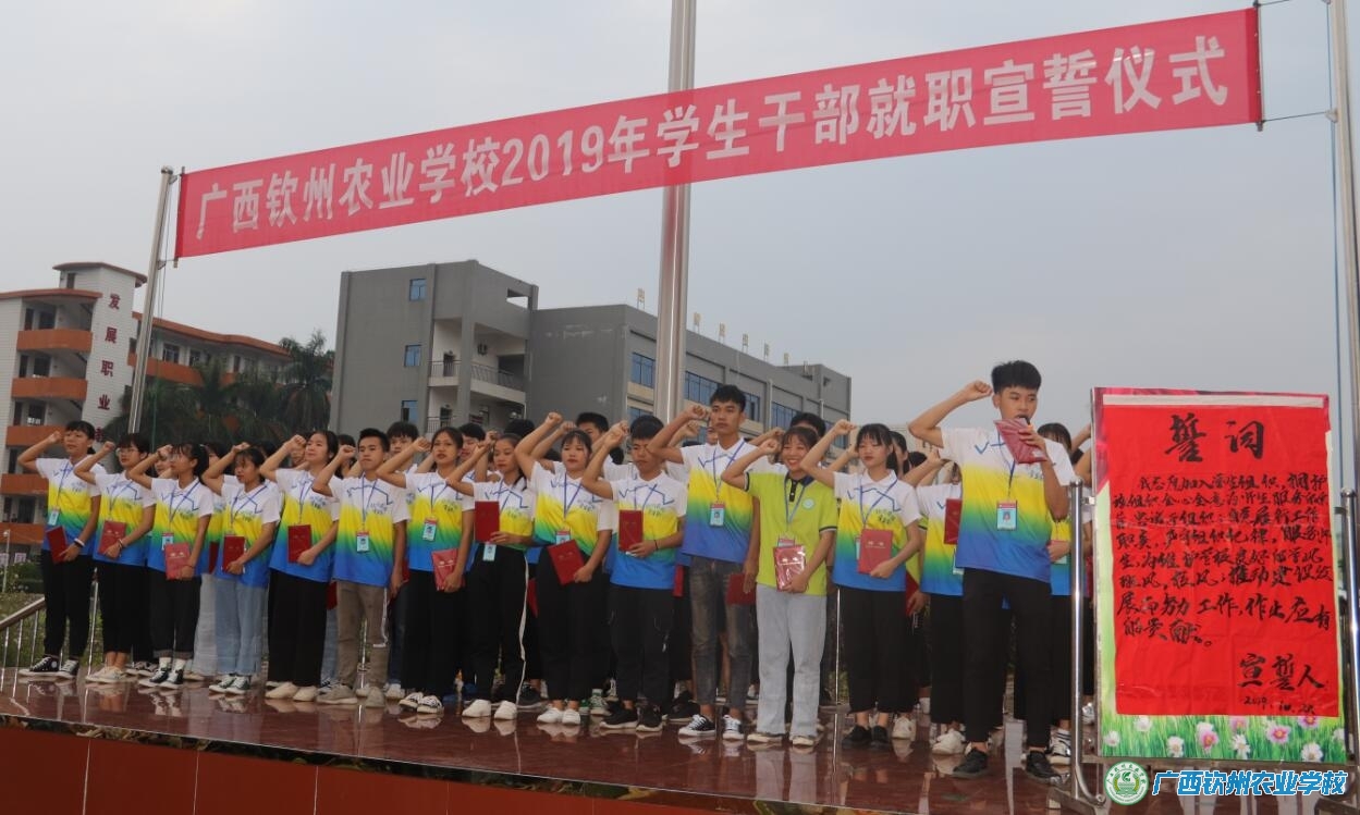 仪式上,学生科邓业斌科长和团委王白玉书记分别宣读了《广西钦州农业学校第三十四届学生会干部任职的决定》和《关于学校团委内设机构干部任职的决定》。在第三十四届学生会廖展主席的领誓下,新干部们高举右手,庄严宣誓。干部们表示,在今后的学习和工作中,一定会更加团结勤奋、追求卓越,以实际行动展示学生干部的先进性和表率作用,为服务全校师生贡献自己的力量。